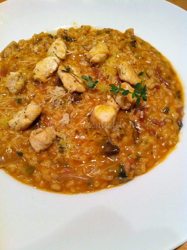 Ik heb geen zin om boodschappen te doen en besluit iets lekkers te maken met de ingrediënten die ik in huis heb. Al snel sprokkel ik voldoende ingrediënten bij elkaar voor een herfstig risottogerecht. Ik ben dol op risotto en deelde meerdere recepten met je, maar deze staat direct in mijn risotto top 3!