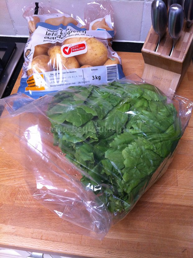 Vanmorgen scoorde ik tijdens het boodschappen doen een grote krop andijvie voor mijn befaamde rauwe andijviestamppot….