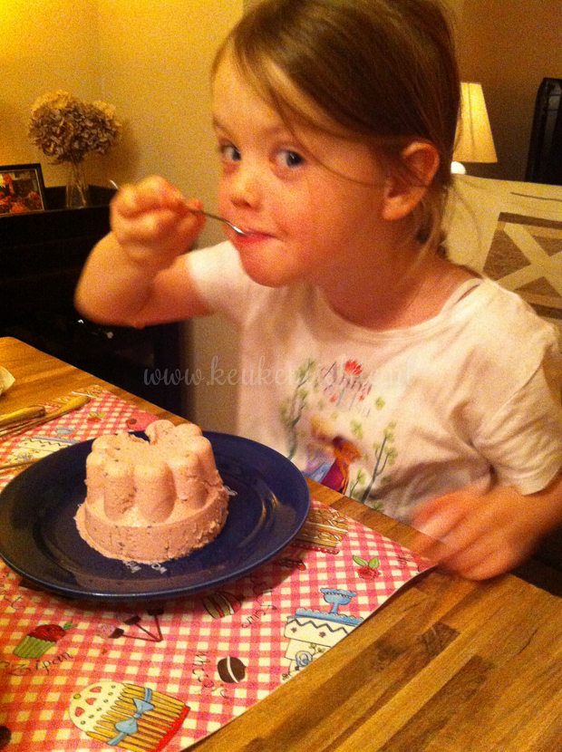 Haha, ze kreeg wel wat hulp bij het opeten hoor …