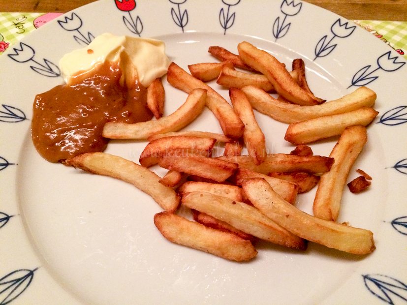 Omdat we nog pindasaus over hebben van gisteren, besluit ik vanavond friet te bakken. Wel verse friet van zelfgesneden aardappels en gebakken in de Airfryer. Zo zondig ik toch niet helemaal. 🙂