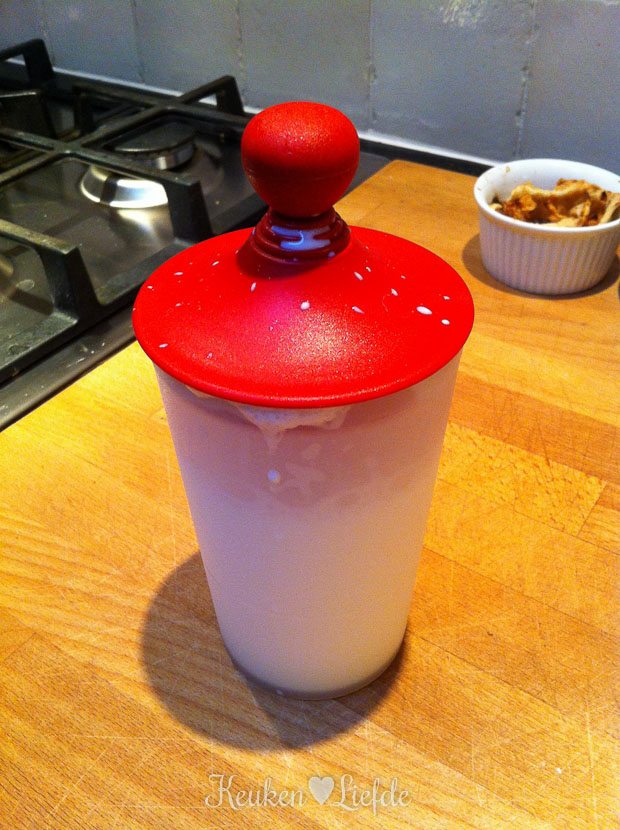 Woensdag begin ik de dag met een lekkere latte macchiato. Hoewel ik niet echt een vast ochtendritueel heb, is dit nu al enkele weken mijn favoriete drankje om de dag mee te beginnen. Na diverse experimenten heb ik eindelijk het geheim ontdekt van een stevige melkschuimkraag. Yes! De latte macchiato top ik af met kaneelpoeder en suiker. Echt te lekker!