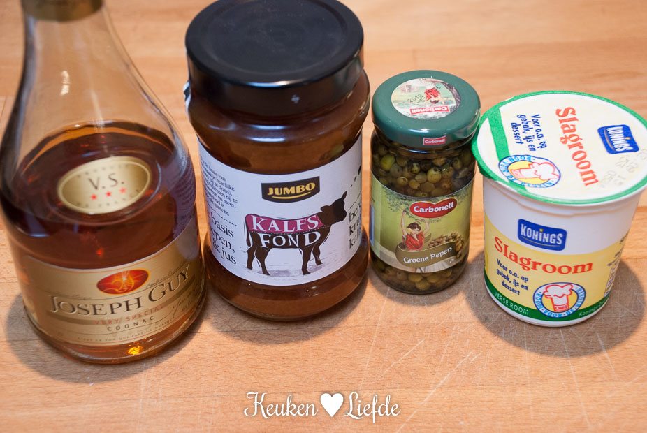 De pepersaus was heerlijk! Ik maak nooit meer een andere. Had kalfsfond gekocht bij AH en die is zeer geconcentreerd. Daar heb je maximaal 20 ml van nodig, en dan aanvullen met water tot 100 ml