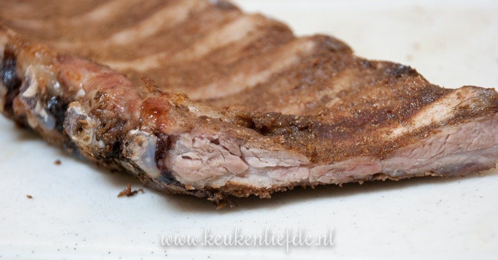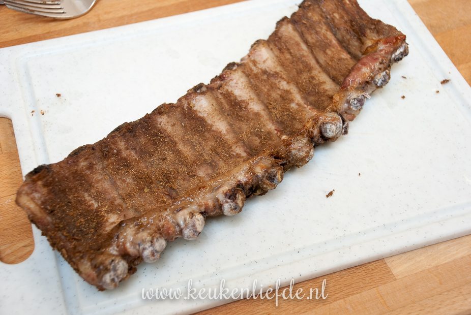 Voor bereiding marineer ik de spareribs eerst een nacht in een droge kruidenrub, waardoor ze een heerlijke smaak krijgen. Daarna gaar ik ze in de oven op lage temperatuur, waardoor ze lekker sappig blijven. Hou je van een sticky zoet laagje op je spareribs, dan kun je ze de laatste tien minuten van de bereidingstijd insmeren met barbecuesaus en afbakken in de oven, of op de barbecue.