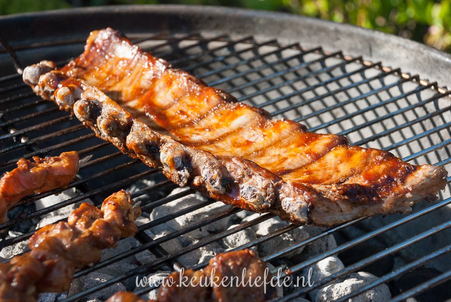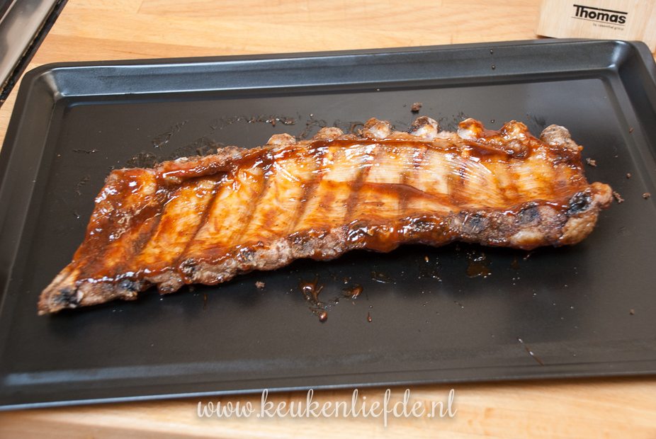 Houd je van een kleverig, zoet laagje over je spareribs? Smeer de spareribs — de laatste 10 minuten van de bereidingstijd — in met barbecuesaus en bak ze af in de oven (140 graden), of op de barbecue totdat ze sticky zijn.
