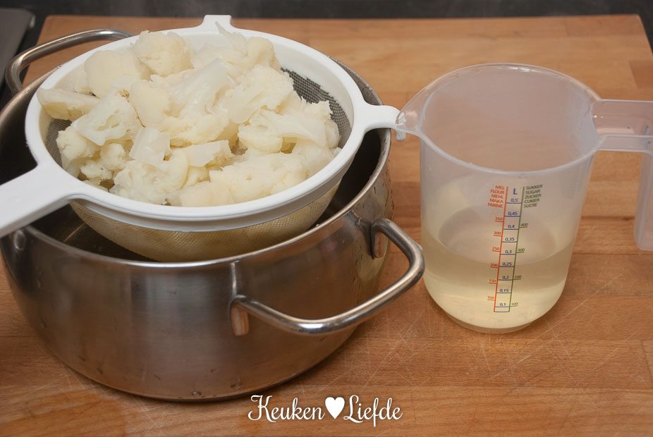 hoeveel kookvocht van de bloemkool moet ik gebruiken?