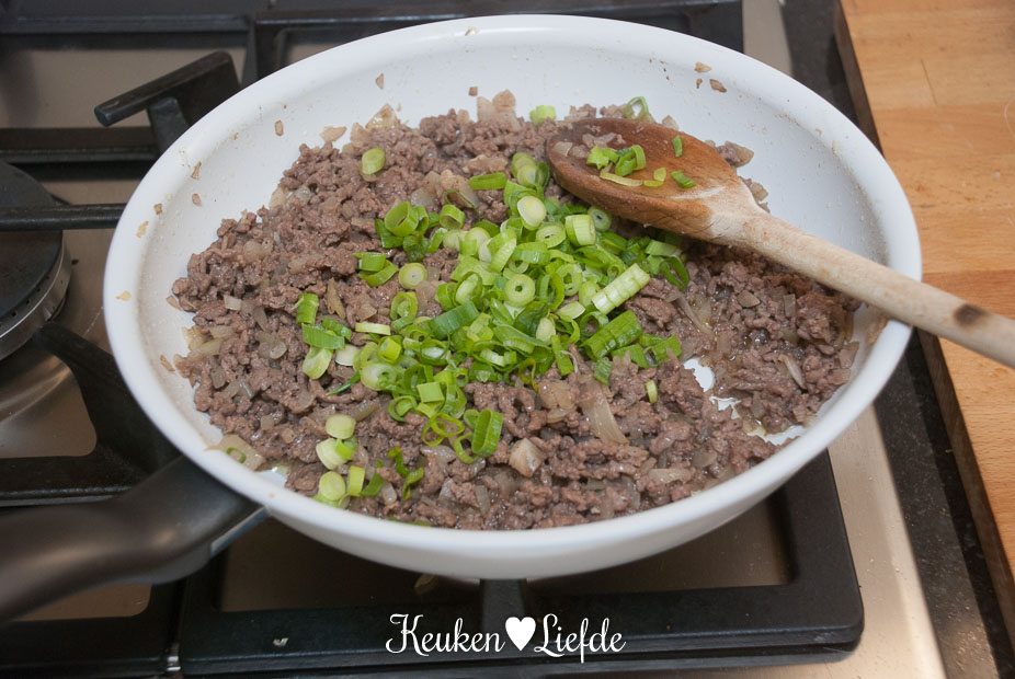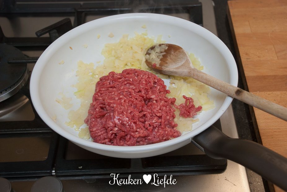 Zelf heb ik het gehakt vooraf een beetje gekruid met gehaktkruiden.