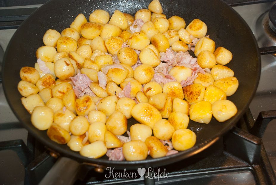 - 4 plakjes ontbijtspek, in repen gesneden