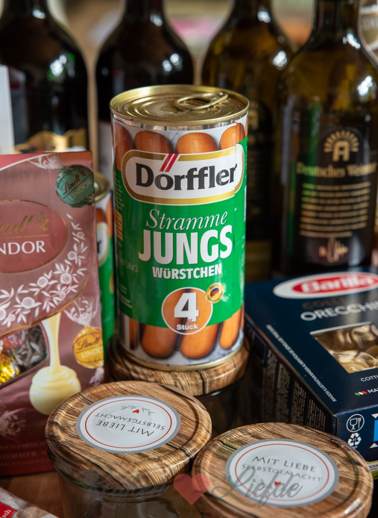 Er gaan altijd een aantal blikken Stramme Jungs worsten van Dorffler in ons boodschappenkarretje. Dit zijn de lekkerste worsten die er maar zijn! Sappig, vol van smaak en met een knapperig velletje!