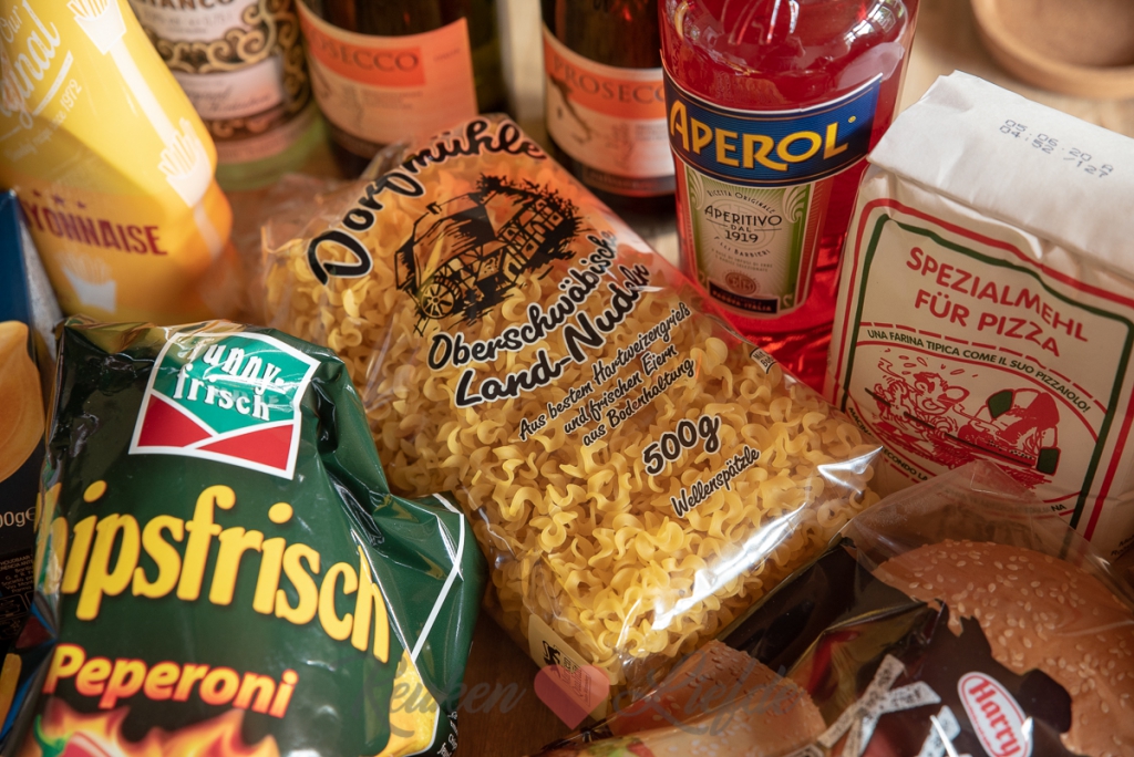 In Duitsland hebben ze een veel uitgebreider assortiment van gedroogde pasta. Je vindt er alle soorten en maten! Ik gooi altijd wel een zak of twee pastasoorten in mijn mandje die ik in Nederland niet zo snel tegenkom.