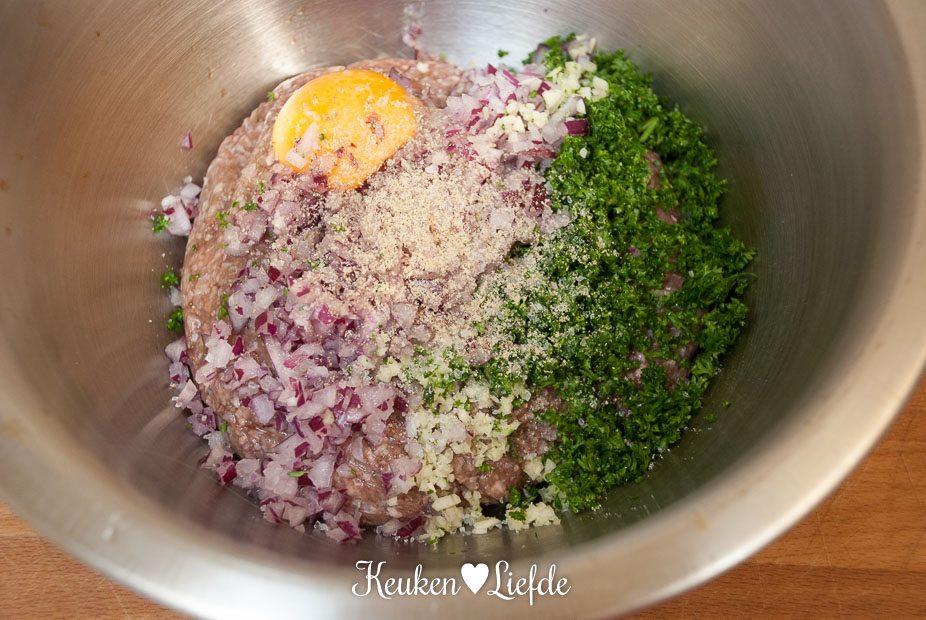 • 3 takjes platte peterselie, alleen de blaadjes, fijngehakt