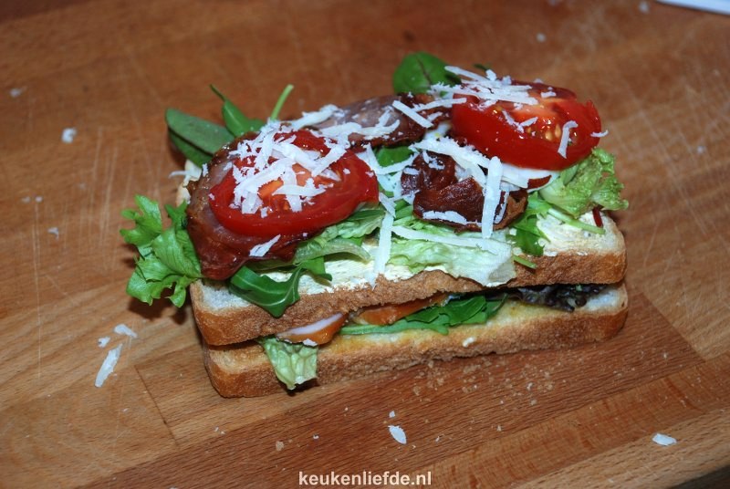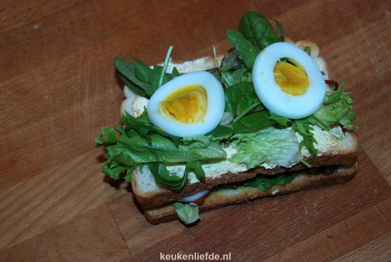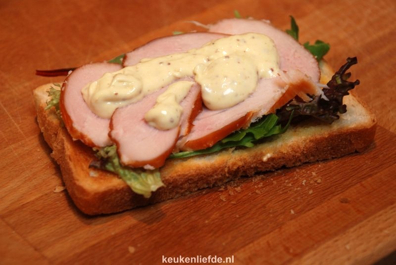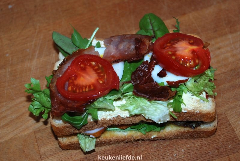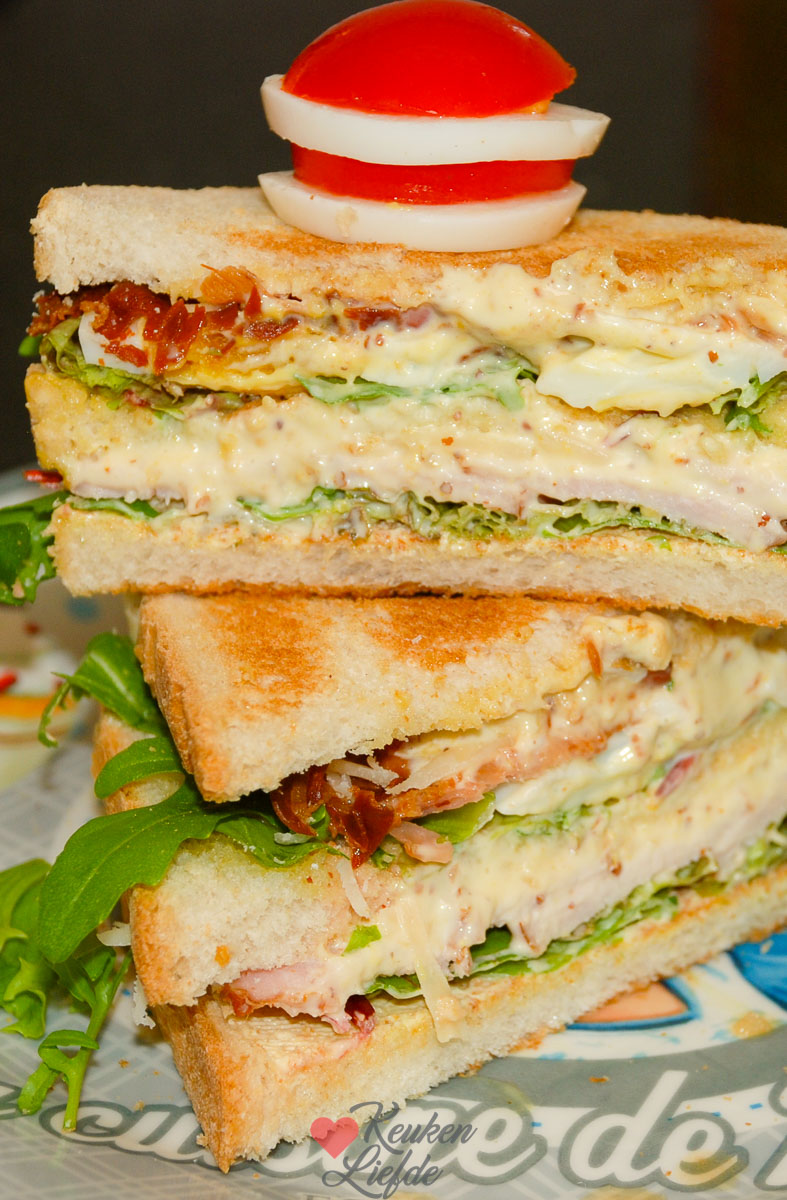 Je maakt deze club sandwich verrassend makkelijk en snel. Wat bacon uitbakken, eitje koken, brood roosteren, honing-mosterdsausje maken en stapelen maar. Snijd hem diagonaal doormidden, steek er een leuke prikker in en je hebt thuis die echte “lunchroom club sandwich”-vibe.