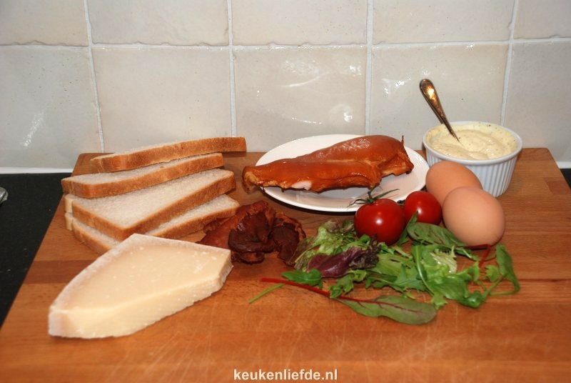 - 1/2 gerookte kipfilet, in plakken gesneden