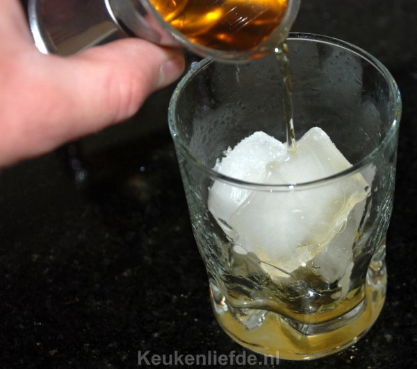 Doe het ijs in een whiskeyglas en voeg de whisky en Amaretto toe. Roer goed door en serveer direct.