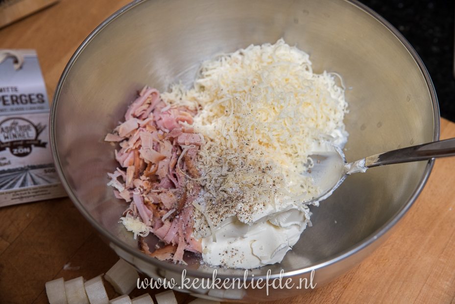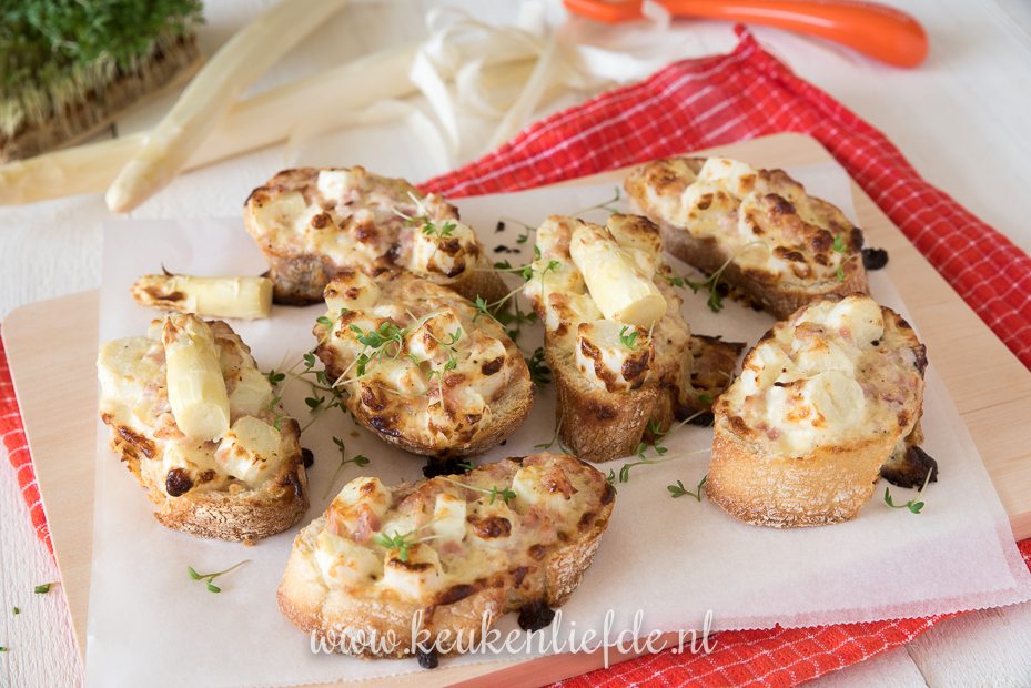 Na afloop van de feestelijkheden krijg ik een leuke goodiebag mee naar huis met daarin onder andere een bosje van het kostbare Witte Goud. Dat komt goed uit, want na het proeven van alle asperge lekkernijen sta ik te popelen om thuis zelf aan de slag te gaan! Tijdens de rit naar huis ontstaat het idee voor dit croque monsieur borrelhapje met witte asperge. Een heerlijk hapje om gasten mee te verrassen, of gewoon om lekker zelf van te genieten omdat je daar zin in hebt!
