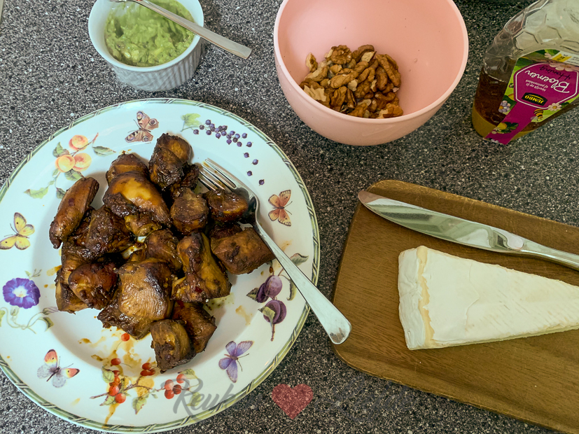 Op oudjaarsavond maken we traditiegetrouw een klein buffetje om de hele avond van te snoepen. Dit keer bestond het buffet uit kipsaté (zonder stokje want die waren op), pindasaus en cocktailsaus, eischoteltje, carpaccio tapenade, brie, walnoten en honing, beenham uit de oven, sushi en stokbrood.