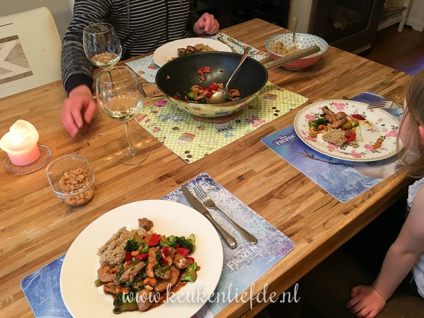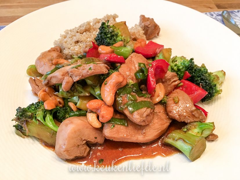 ’s Avonds kook ik kip siam: een Oosters kipgerecht met broccoli, paprika en cashewnoten in een zoete ketjapsaus. Ver-ruk-ke-lijk! En binnen 15 minuten op tafel! (Marinadetijd voor de kip niet meegeteld) Ik serveer er quinoa bij omdat ik weer een beetje op mijn gewicht wil letten… Recept kom eraan. Wil je niet zolang wachten? Probeer dan ondertussen deze kip siam met sugar snaps!