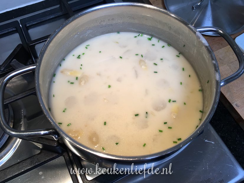 Als ik El naar school heb gebracht ga ik boodschappen doen en zie ik de eerste witte asperges weer liggen. Ze zijn nog erg duur (dit jaar start het aspergeseizoen officieel op 11 april) maar ik kan ze niet weerstaan. Eenmaal thuis maak ik een heerlijke asperge-crèmesoep met verse bieslook. Het recept ga ik op 11 april met je delen! 🙂 Wil je niet zolang wachten? Dit is ook een heerlijk aspergesoeprecept!