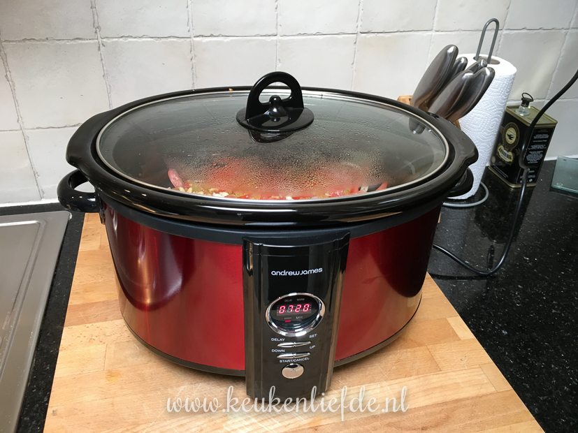Ella-Marie wordt ’s middags opgehaald door de ouders van Johan, want ze mag samen met haar neefje Levi een nachtje bij opa en oma logeren. Als Ella-Marie weg is doen Johan en ik boodschappen. Daarna gaat Johan het huis schoonmaken en tref ik alvast voorbereidingen voor het avondeten. Vanavond eten we gesmoorde kippendijen uit de slowcooker met onder andere venkel, tomaat en olijven. Het favoriete maaltje van manlief. Ik bak de kippendijen eerst aan in de koekenpan (voor extra smaak) en dan doe ik ze samen met de overige ingrediënten in de slowcooker. Het recept vind je hier.