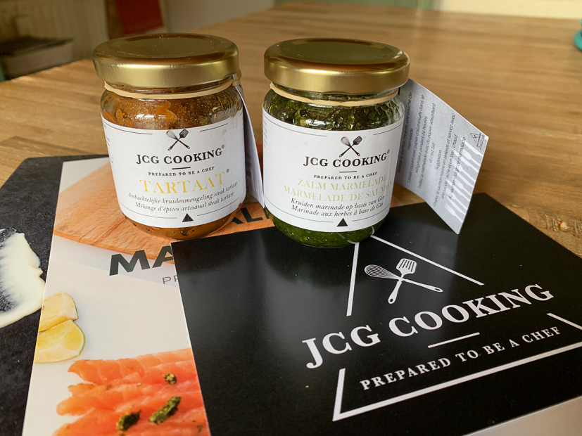 We ontvingen ook weer lekkere foodpost: een potje kruidenpasta om steak tartaar te maken en een marinade op basis van Gin en verse kruiden om verse zalm te marineren van JCG Cooking. Binnenkort maar eens uitproberen.