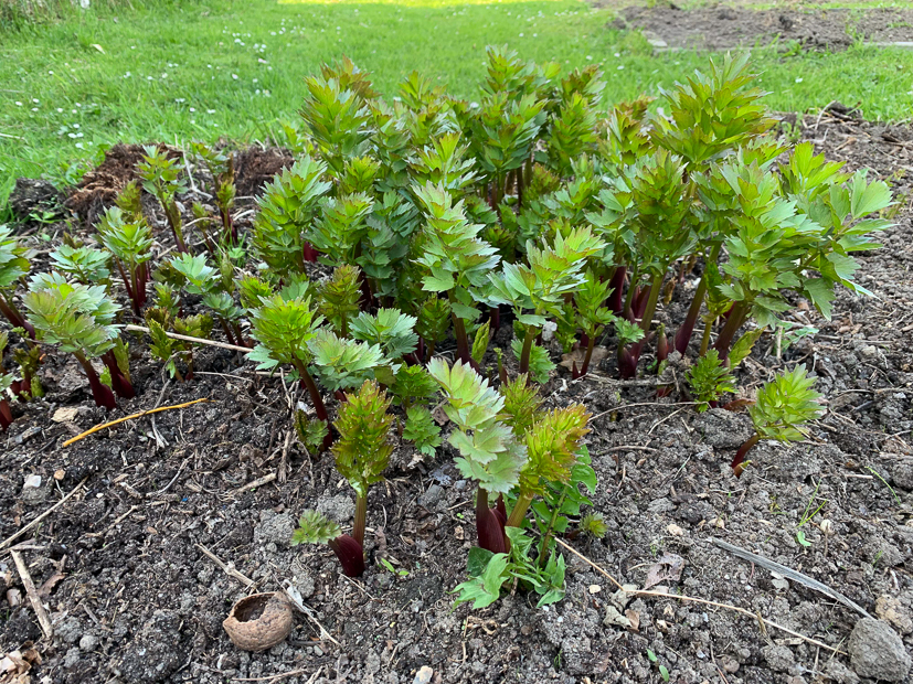 Het is heerlijk weer vandaag. Ik voel me gelukkig steeds beter en kan in de ochtenduren weer een paar uurtjes werken. Als ik Ella-Marie ’s middags uit school haal gaan we lekker de tuin in. De rabarber groeit als kool!