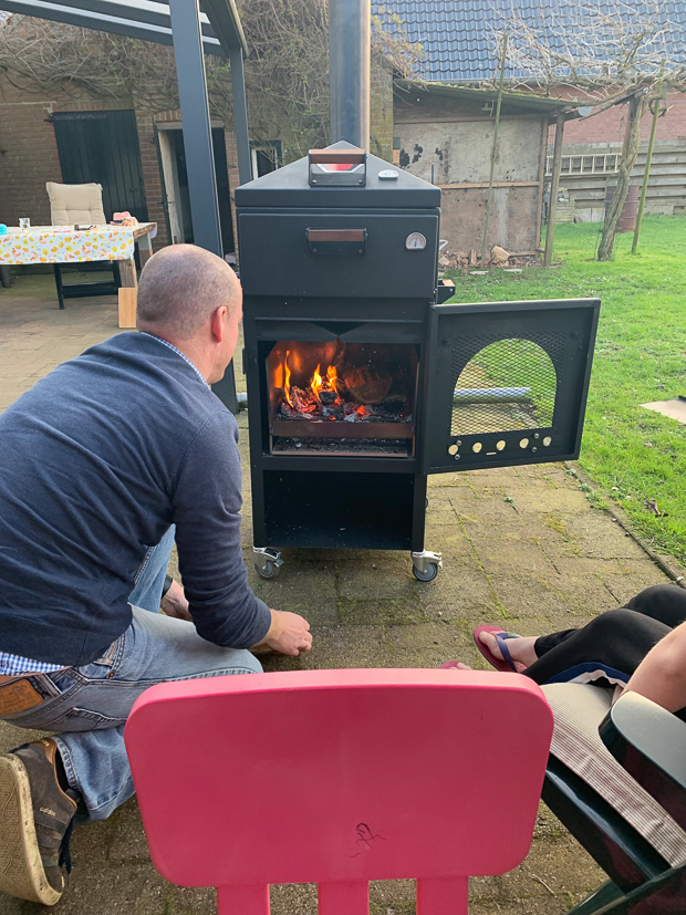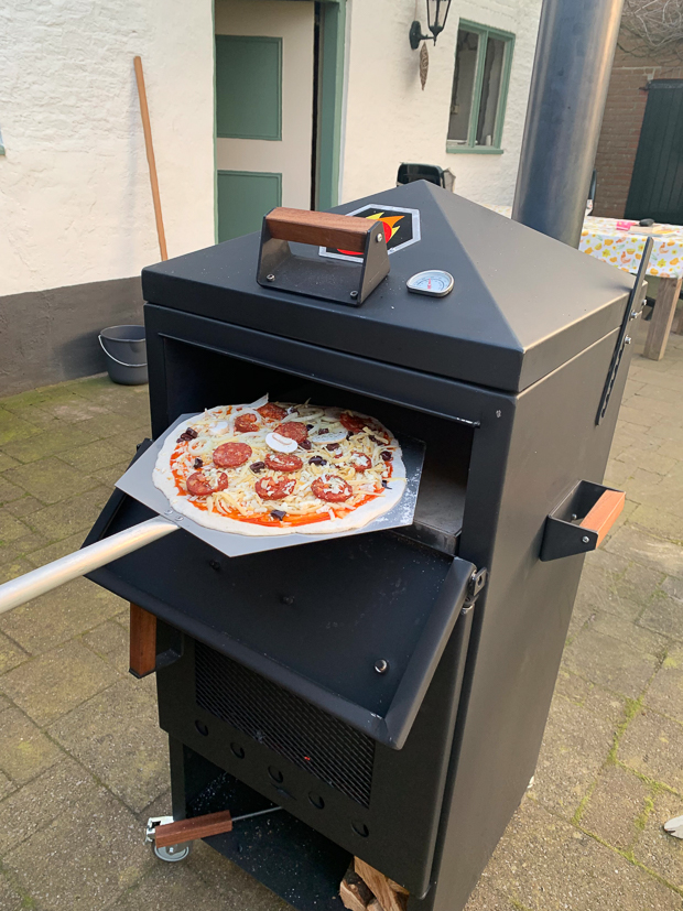 Johan en ik hadden hem het liefst meteen aangestoken om pizza te eten, maar dat moet nog even wachten. Voordat je hem gaat gebruiken moet je hem eerst een keer goed op temperatuur stoken zodat de coating kan inbranden. Dan gaan we vrijdag doen en zaterdag staat dan eindelijk onze allereerste houtgestookte pizza op het menu! Ik ben zo benieuwd!