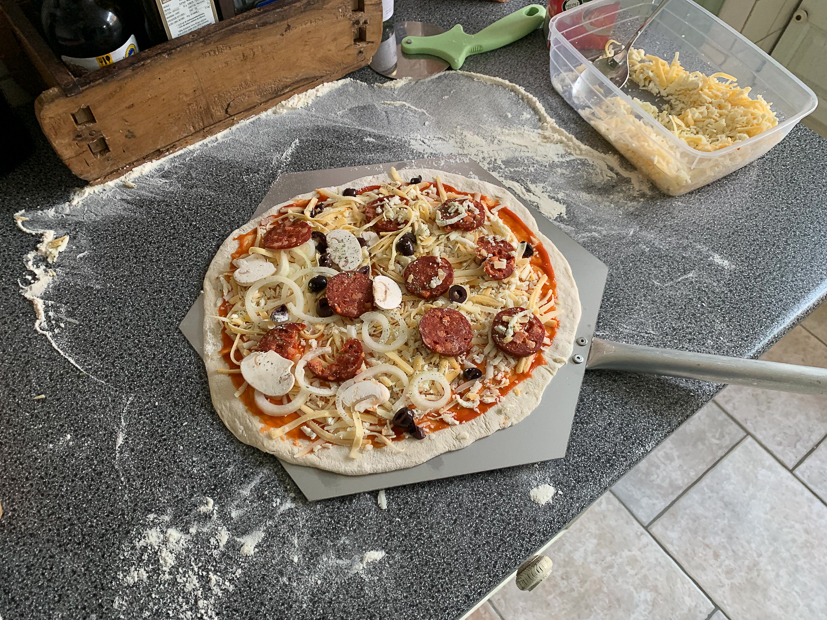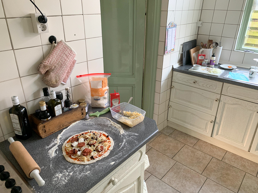 Ella-Marie heeft vandaag geen voetbalwedstrijd dus kunnen we allemaal lekker uitslapen. Daarna gaat Johan werken in de tuin, ik trek me terug op kantoor om nog een paar uurtjes te werken en Ella-Marie vermaakt zich ook prima in en rondom huis. ’s Middags maak ik pizzadeeg, vanavond eten we voor het eerst pizza uit de houtoven!