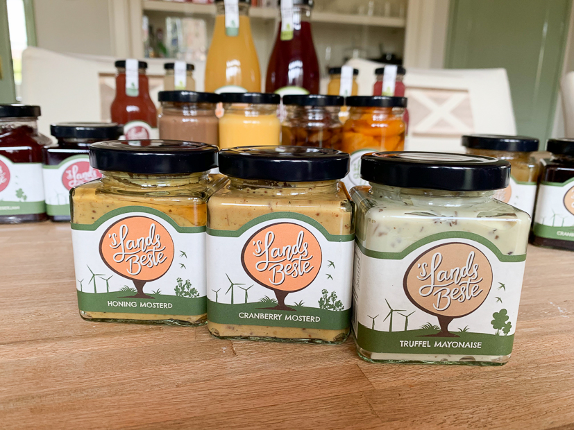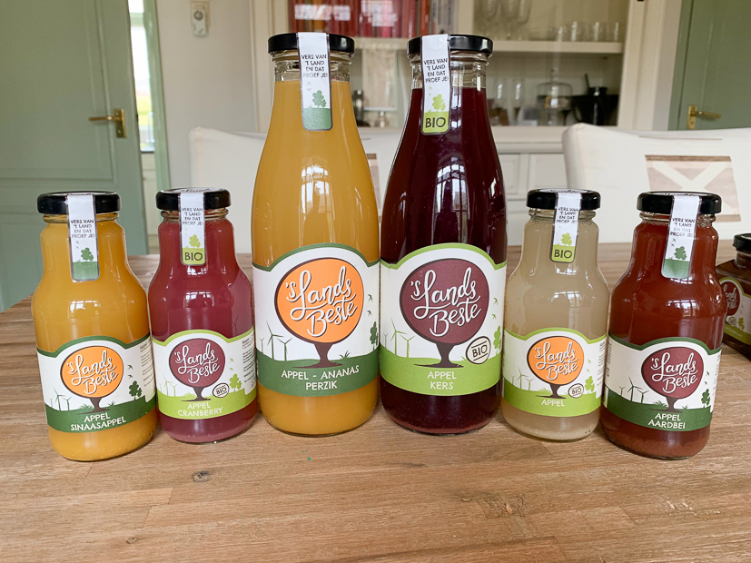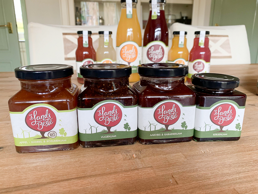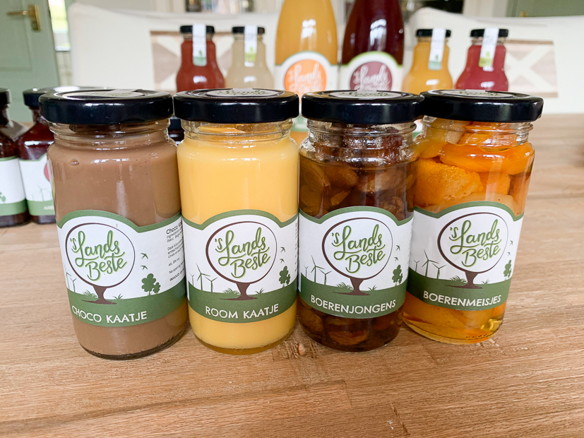 Ik doe ’s middags alleen even de deur open voor dit (enorme!) pakket dat wordt bezorgd. Allemaal producten van ’s LandsBeste die uitsluitend worden verkocht in speciaalzaken. Wauw! ’s LandsBeste maakt al hun producten met fruit uit eigen boomgaard.