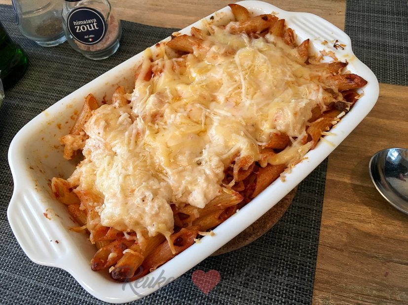Er staat een gegratineerde pastaovenschotel op het menu vanavond. Penne met gehakt-tomatensaus in een ovenschaal, bestrooien met kaas en gratineren in de oven. 🙂