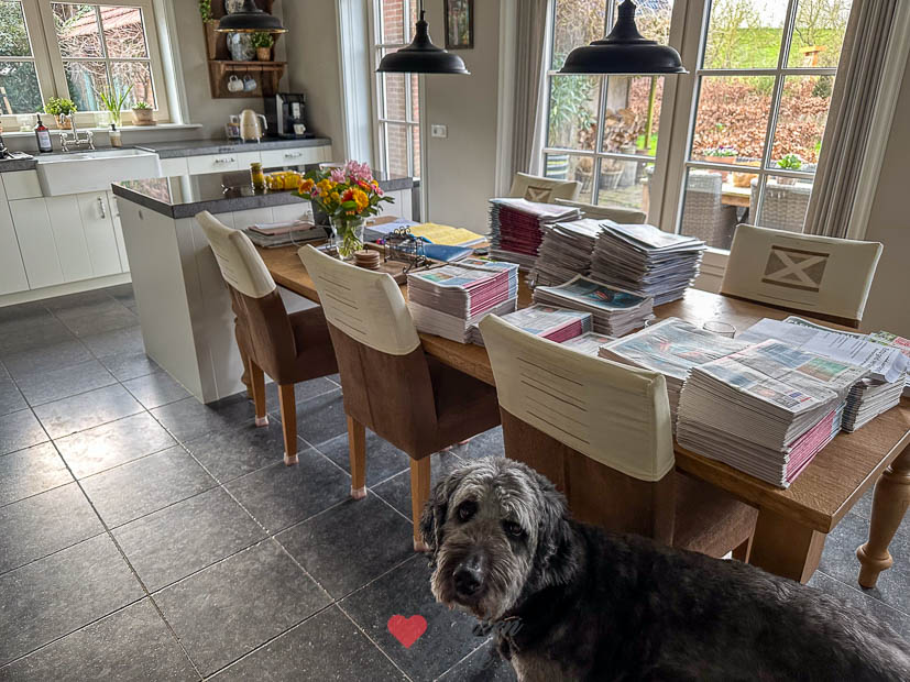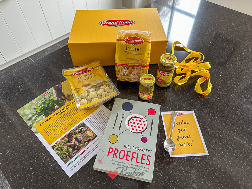 Bij thuiskomst liggen de krantjes en folders op ons te wachten van Ella-Marie haar krantenwijk dus ze hoeft zich niet te vervelen. Later word ook nog een leuk pakket bezorgd van Grand ‘Italia met hun penne pasta, gnocchi en pesto die in de smaaktest van Essensor is bekroond “als lekkerste getest”. En er zit een interessant boek bij: ‘Proefles’ van Joël Broekaert. Leuk!