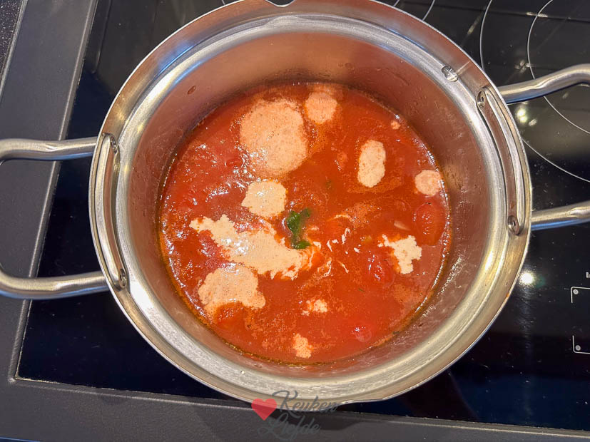 Voor het avondeten maakte ik een snelle tomatensoep. In de stad bij de Hema had ik broodjes en vleeswaren gekocht en die aten we erbij.