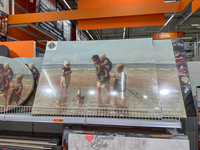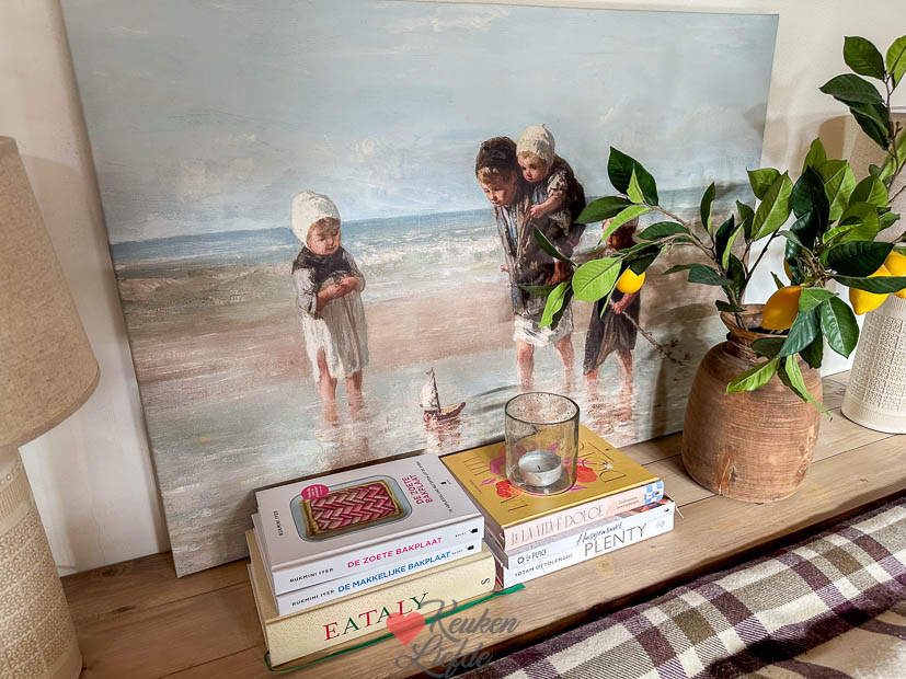 Bij de Hornbach zag ik een leuke canvas van de ‘Kinderen der Zee’ van Jozef Israëls voor maar 38,95 euro en die kon ik echt niet laten staan. Thuis krijgt hij een mooi plekje op de sidetable in de zitkamer.