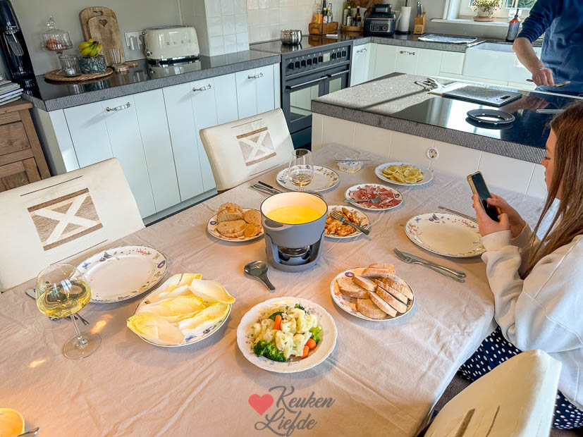 ’s Avonds gaan we gezellig kaasfonduen.