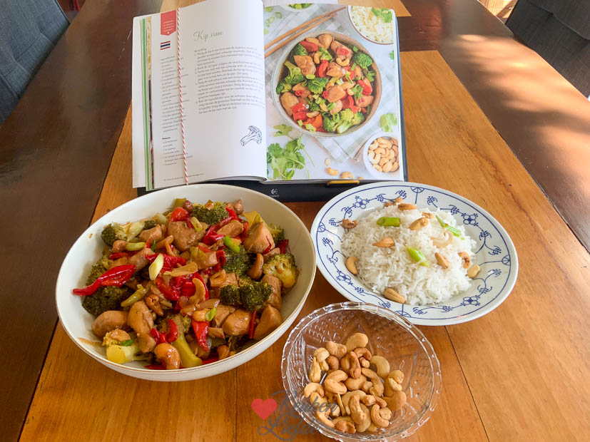 Mijn moeder stuurt ’s middags een foto door van haar avondeten. Ze heeft de Thaise kip siam gemaakt uit ons kookboek Makkelijke Wereldgerechten en die viel erg goed in de smaak. Ik krijg er ook meteen weer zin in. Snel weer zelf maken.