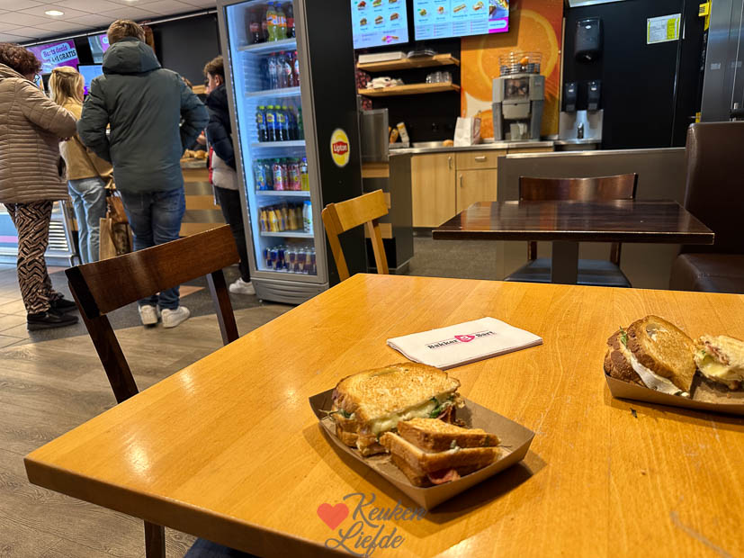 Ella-Marie heeft toetsweek en hoeft vandaag maar voor één toets naar school. Ik breng haar met de auto en als ze klaar is eten we een tosti bij Bakker Bart. Daarna weer vlug terug naar huis om te leren en werken.