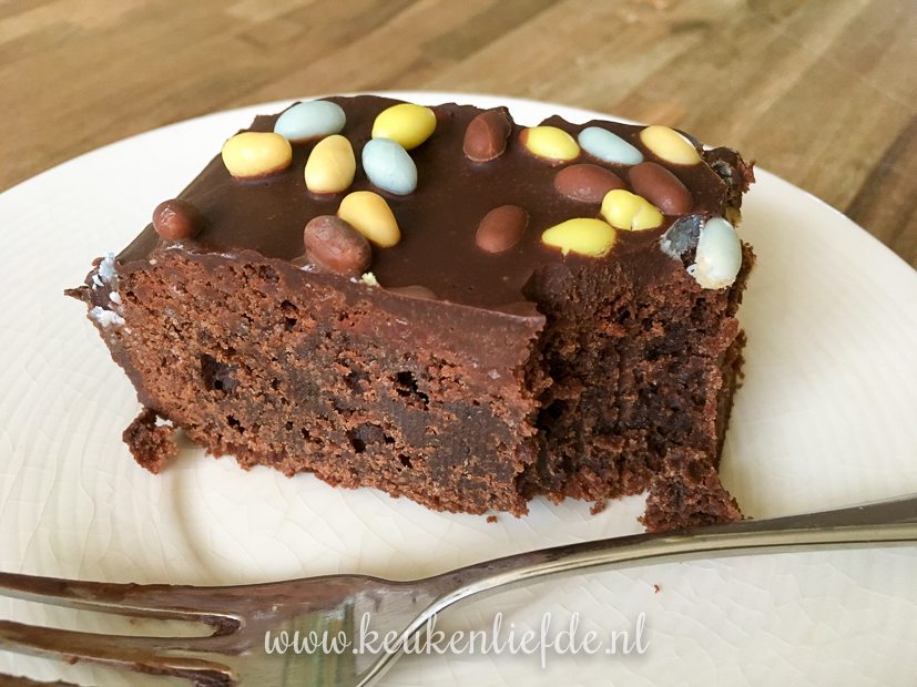 Ik eet een stukje paasbrownie bij de koffie.