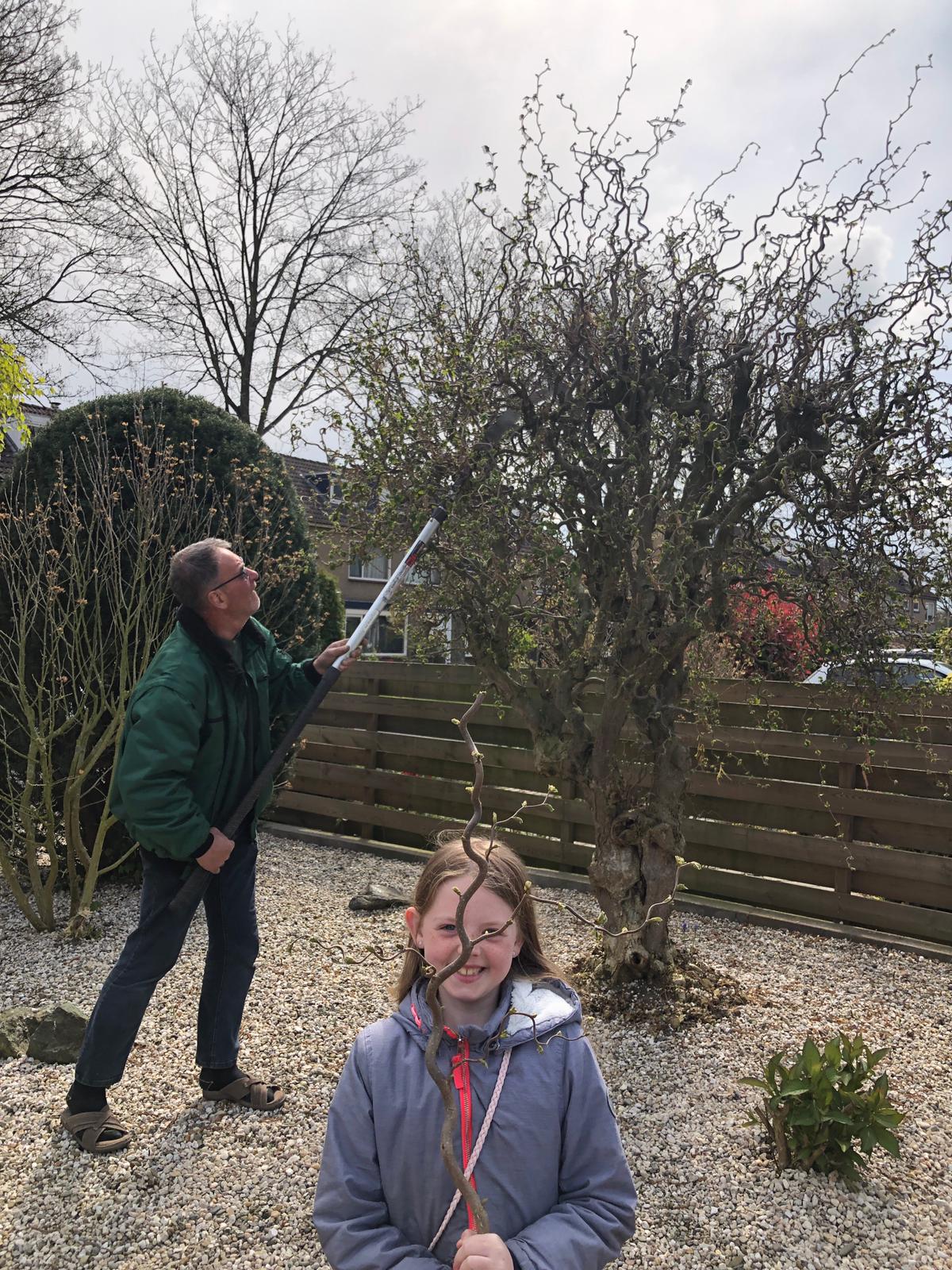 Na de lunch gaan Johan en Ella nog even langs bij Johan zijn ouders en krijgen ze prachtige paastakken mee. Staat weer gezellig!