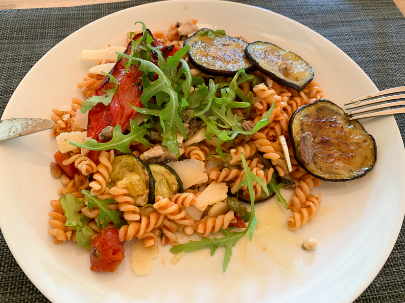 ’s Avonds maak ik een simpele pasta met tomatensaus en gegrilde groenten uit de oven. Dit recept ga ik binnenkort met je delen! Was superlekker. 🙂