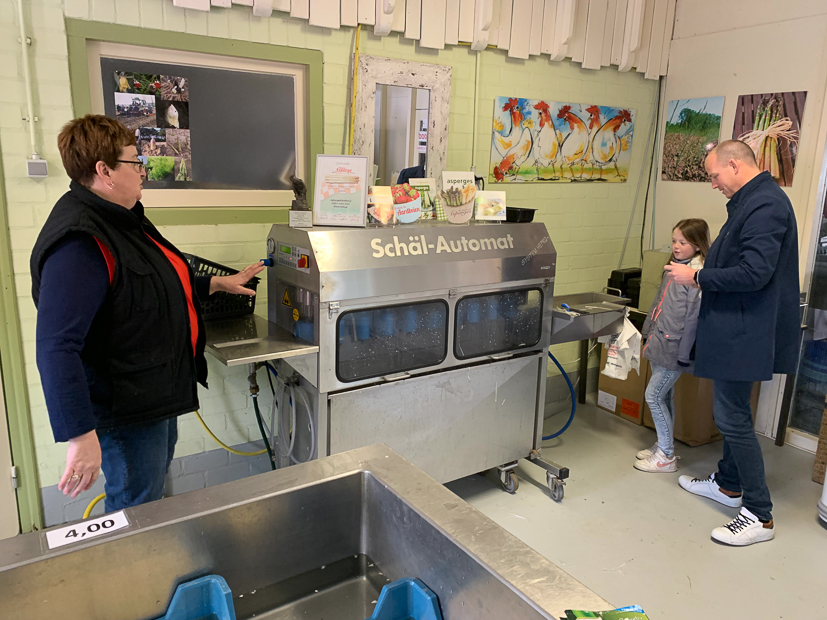 Onderweg naar huis kopen we verse asperges in een landwinkel die we meteen maar even laten schillen. De schillen neem ik ook mee naar huis want daar maak ik natuurlijk soep van!