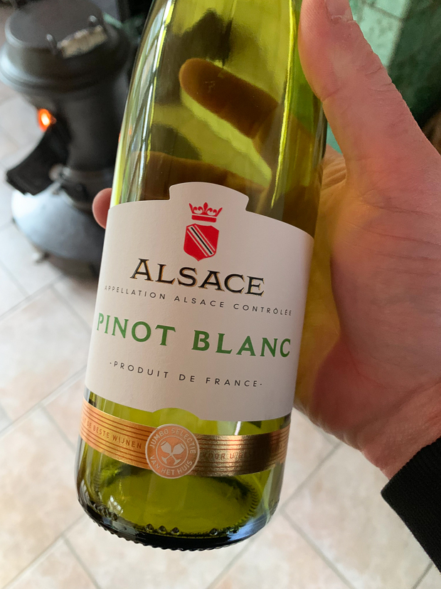 Ik maak tegenwoordig foto’s van flessen wijn die we erg lekker vinden, anders vergeet ik het. Deze Pinot Blanc was heerlijk!