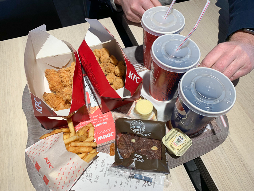 Van keukens kijken word je hongerig en dus gaan we even lunchen bij KFC. 🙂