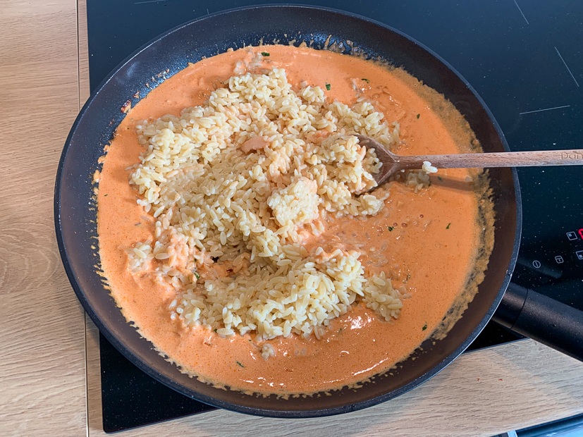 Deze Princess gourmetset (Dinner4All Circle) werd thuisbezorgd en ik kan niet wachten om hem uit te proberen. Wij zijn dol op gourmetten en dit lijkt me dus echt ideaal. Normaal gooi je al snel de hele bakplaat vol voor iedereen waardoor je toch sneller eet en vol zit. Hiermee heeft iedereen zijn eigen bakplaat. Je kunt kiezen of je de bakplaat aan je bord schuift of aan de centrale midden unit. Aankomende vrijdag (Goede Vrijdag) gaan we hem maar eens uitproberen. Ik zal tijdens het eten een paar IG-stories delen, dan kun je zien wat wij op tafel zetten en of het een succes is. 😀 Voor het avondeten maakte ik risoni in wodka-tomatenroomsaus met gerookte zalm. Geïnspireerd op het Instagram/TikTok-recept van topmodel Gigi Hadid. God-de-lijk! Je maakt hem zo: