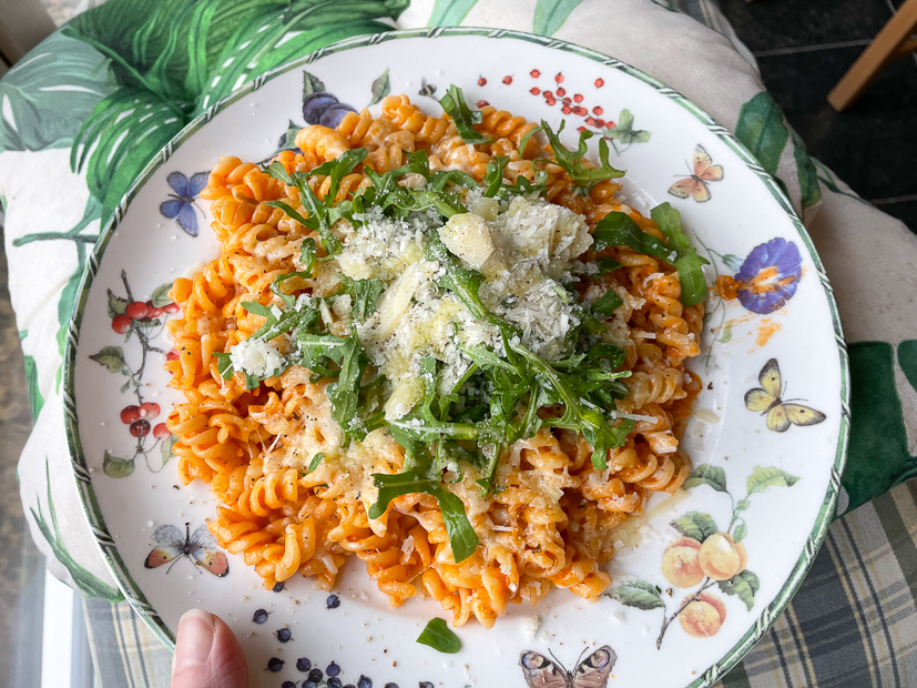 Vandaag is mijn vaste kookdag dus ja, ik sta weer in de keuken… Het eerste gerecht dat ik maakte at ik gedeeltelijk op als lunch. Daarna maakte ik nog twee andere recepten: een pastasalade met tonijn en Chinese tomatensoep. Het recept van de Chinese tomatensoep deelde ik in meerdere IG-stories. Je kunt ze nog terugvinden op Instagram in de highlight ‘recepten’. Het uitgeschreven recept ga ik nog met je delen op KL. De soep smaakt bijna identiek aan die van de afhaalchinees dus als je daar liefhebber van bent mag je dit recept niet missen!
