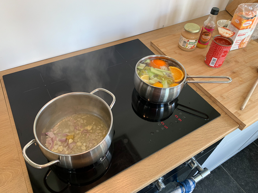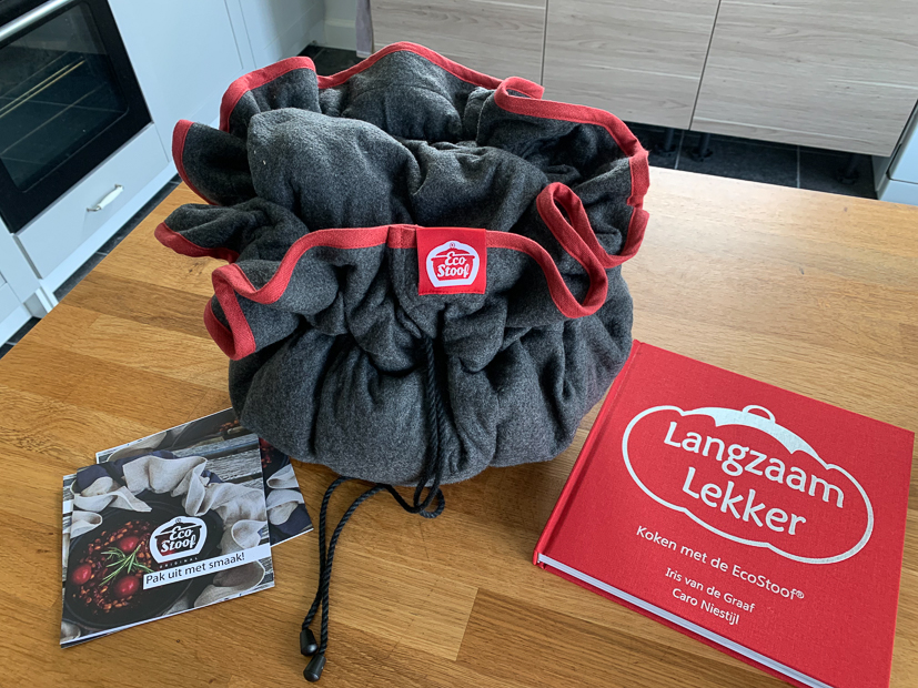 Ik sta weer in de keuken om een aantal nieuwe KL-recepten te maken. Onderstaande gerecht viel erg goed in de smaak bij man en dochter en de pan ging ’s avonds schoon leeg. Ook kreeg ik de Ecostoof thuisgestuurd om uit te proberen inclusief receptenboek. De Ecostoof is een zak gemaakt van isolerende ecomaterialen waar je een pan met eten in kunt stoppen om te laten garen. Bedoeling is dat je je eten dan eerst een paar minuten in de pan laat koken en vervolgens verder laat garen in de afgesloten Ecostoof. Ik ben heel benieuwd hoe goed dit werkt en hoe het eten smaakt, dus ik ga hem binnenkort uitproberen. Wordt vervolgd…