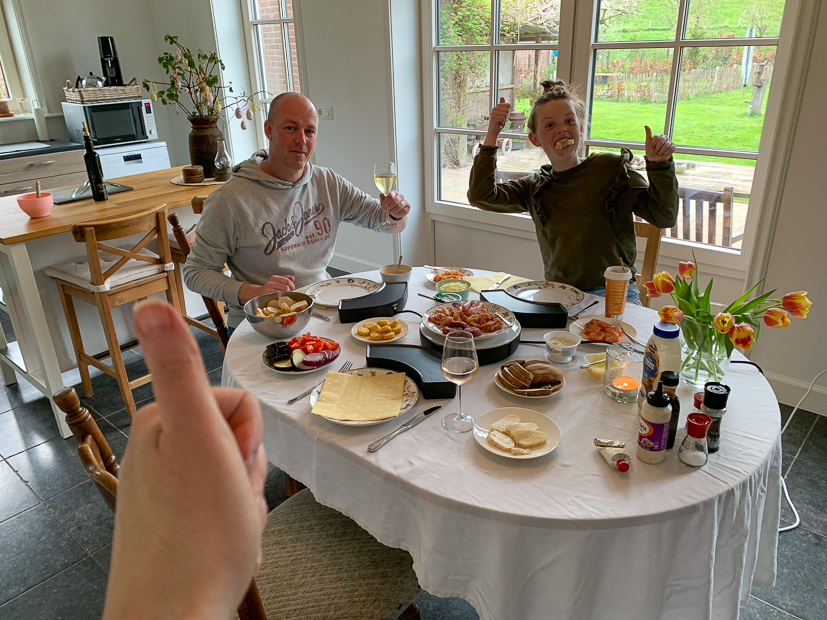 Vandaag is het Goede Vrijdag en Johan is lekker vrij om mij te irriteren. 😉 Ella-Marie moest gewoon naar school. We kregen een lekker pakket thuisbezorgd met alle vier de smaken van Verkade Meesterbaksels koekjes die nu een vernieuwd recept hebben en erbij zat ook een prachtig servies van interieurmerk HKLIVING om de koekjes op te serveren. En er kwam een nieuw kookboek binnen waar ik heel graag mee aan de slag ga: La vita è dolce van Letitia Clark met allemaal Italiaanse zoetigheden. De cannoli moet ik maken! Avonds gingen we lekker gourmetten want we wilden de nieuwe gourmetset uitproberen: de Princess Dinner4All Circle. We hebben nu allemaal een eigen bakplaatje dus je hoeft niet meer over de halve tafel te hangen om je vlees om te draaien. De pannetjes die je normaal onder de bakplaat kan schuiven om eten in te grillen mis je geen seconde. Wij bakten mini rostirondjes op de bakplaat, pannenkoekjes, halloumi, plakken portobello, vlees, zalm, kip, aubergine en nog meer. Het smaakte allemaal even lekker. Wij zijn fan en wat nog leuker is; we mogen er eentje weggeven! De winactie ga ik morgen met je delen in een bericht op IG dus houd het in de gaten!