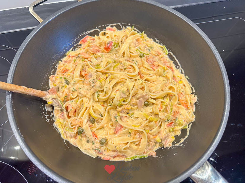 Donderdag breng ik Ella naar school en haal ik meteen wat kleine boodschappen. Daarna rijd ik even langs de Karwei want daar hebben ze 20% korting op het servies. Ik scoorde weer een paar leuke bordjes die jullie vast gaan terugzien op foto en video. ’s Avonds maak ik een van mijn favoriete pastagerechten van dit moment: tagliatelle met kruidenroomkaas, prei, tomaat en tonijn. Zo lekker! Dit recept.
