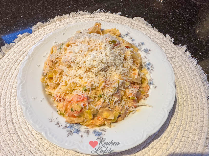 Tussendoor ook op de hoogte blijven? Volg ons op Instagram en Facebook! Hier delen wij kookfilmpjes en filmpjes van achter de schermen. Heb je zelf een leuke foto gemaakt van een KeukenLiefde-gerecht? Deel hem op social media en tag @keukenliefde in je bericht, dan zien wij je foto ook voorbijkomen. 😀