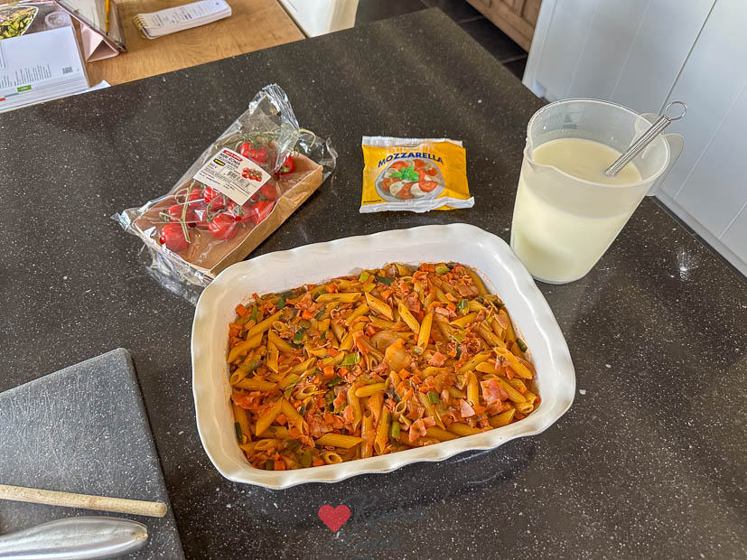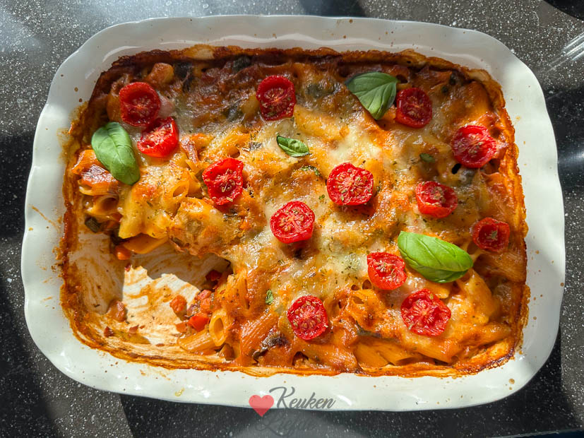 ’s Middags wilde ik een recept dat al een tijdje in mijn hoofd zat uitproberen: een makkelijke pastaschotel (de pasta gaat ongekookt in de ovenschaal) uit de oven. Experiment geslaagd dus het recept ga ik snel met je delen. 🙂