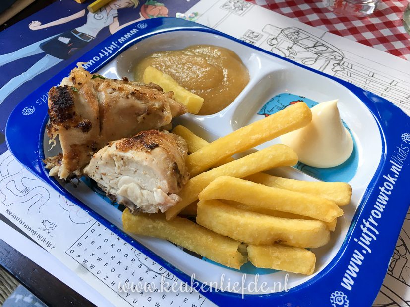 - Ella-Marie krijgt een kindermenu met kip, patat en appelmoes