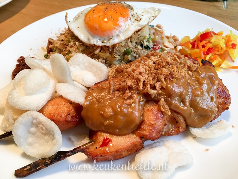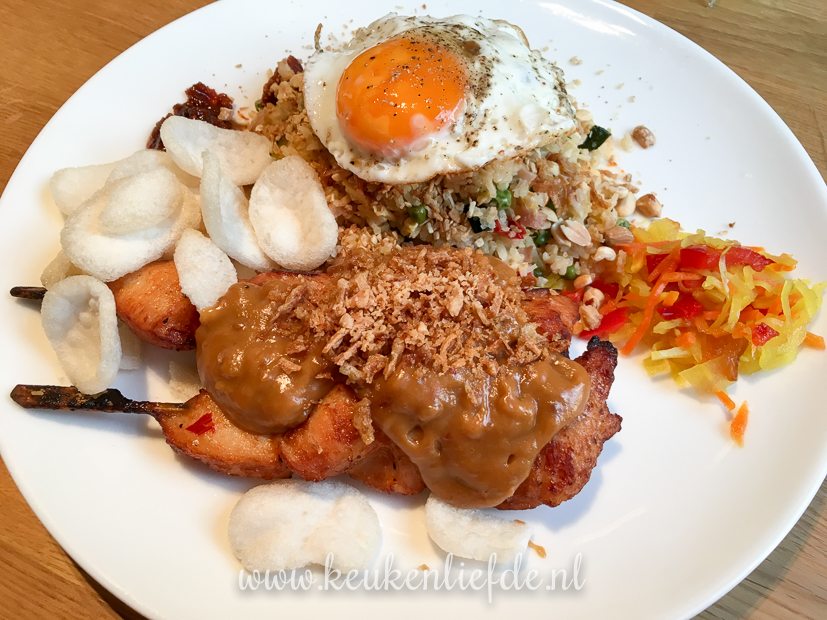 - Nasi goreng met gebakken eitje, saté en pindasaus