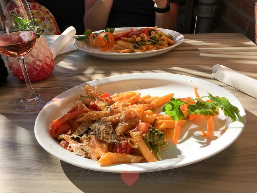 Daarna fietsen we over de dijk naar het voetveer in Wamel en steken we de Waal weer over naar Tiel. Het is dan al half zes en we besluiten maar meteen een hapje in de stad te gaan eten bij de Italiaan Rossetti.
